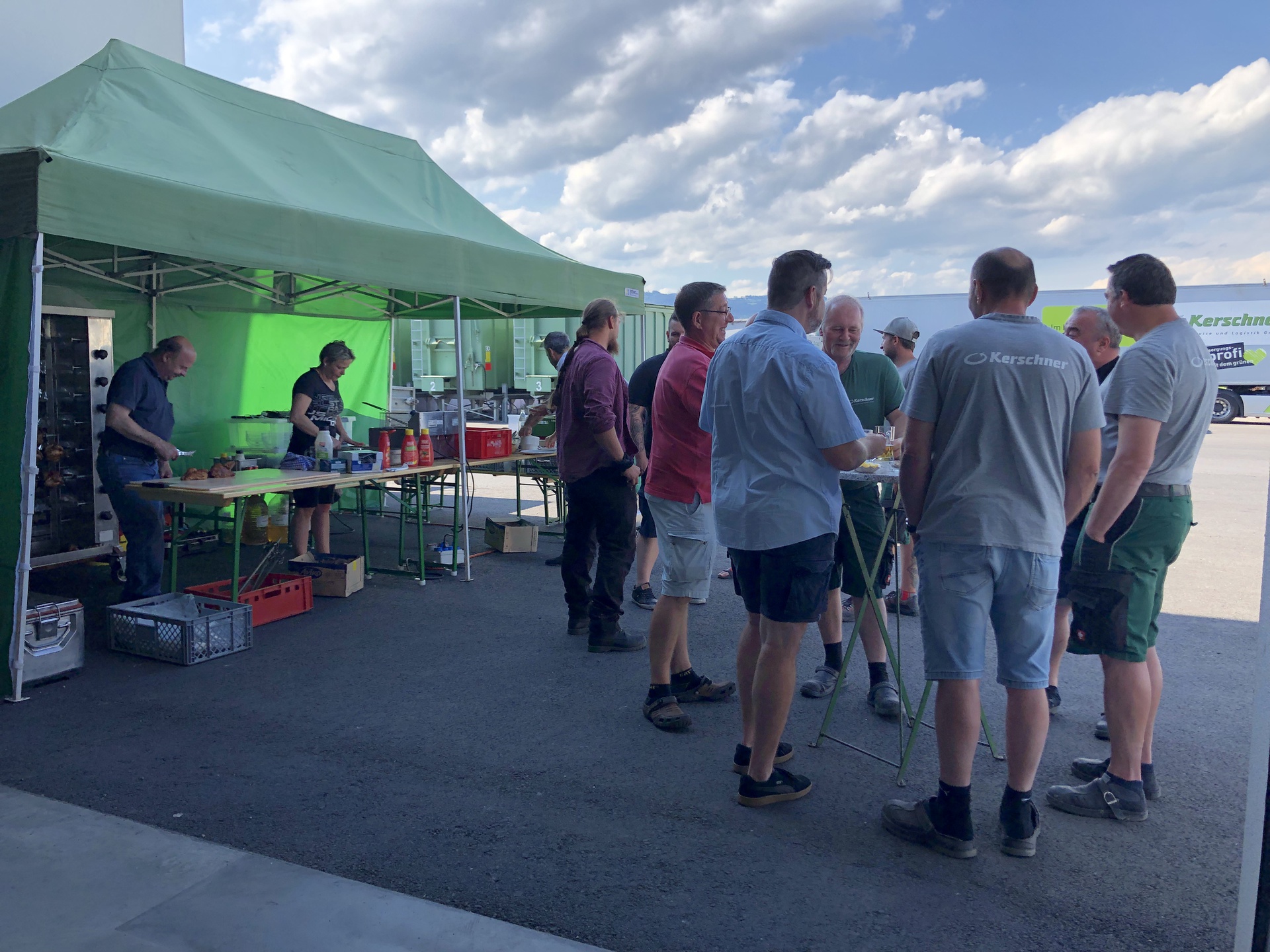 Angepasst an die unterschiedlichen Arbeitszeiten gab es am Donnerstag, 2. Juni ab 14 Uhr Grillhendl für alle Mitarbeiter*innen. Nach und nach fanden sich zahlreiche Kolleginnen & Kollegen in der Werkstatt in Pöchlarn ein und nutzen die Gelegenheit für einen standort- und abteilungsübergreifenden Austausch in geselliger Runde.